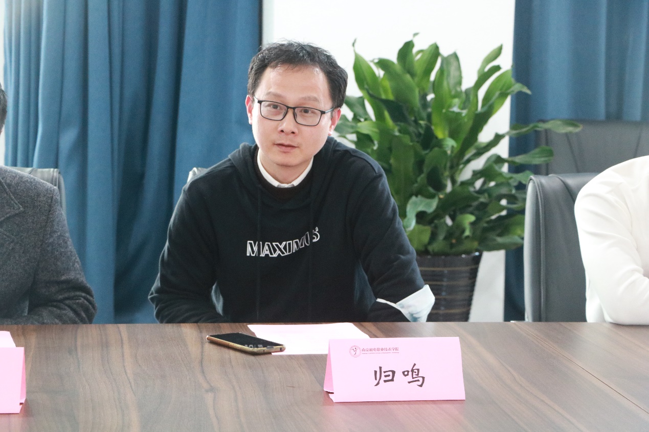 科研及校企合作处处长李木香详细介绍了我校推动校企合作、产教融合的基本情况,表示学校始终坚持“立足企业、面向行业、服务社会”的办学思路,以培养“企业满意、社会满意、学生满意、家长满意”的创新性技术技能人才为目标,积极推进校企合作,建立“分层建设、分类培养”校企合作机制,打造“核心型、紧密型、半紧密型”的校企合作平台,充分发挥行业办学优势,创新校企合作机制,深入推进产教融合,探索“1+1+N”校企合作新模式,促进教育链、产业链与创新链的有机融合。