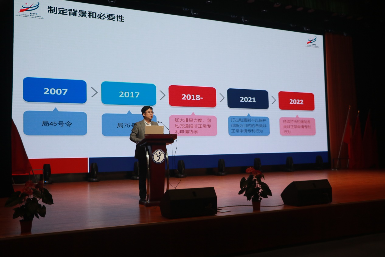 主题报告中,程秀才以《高职院校知识产权高质量发展的实践路径》为题,介绍了知识产权制度建设的背景和必要性,当前专利非正常申请的现状、原因分析及治理机制。他强调,专利非正常申请治理工作是一项长期“工程”,必须完善非正常专利申请治理的法理依据,调整专利费用减免政策,强化申请主体及代理机构的管理,取消专利申请、授权等资助政策,并且完善多部门协同治理机制。刘红阳带来报告《专利文献检索及挖掘技巧》,以生动鲜活的案例演示,围绕专利的基础知识、专利的挖掘技巧、专利文献检索和专利交底书撰写四个方面对专利的相关知识进行深度剖析。