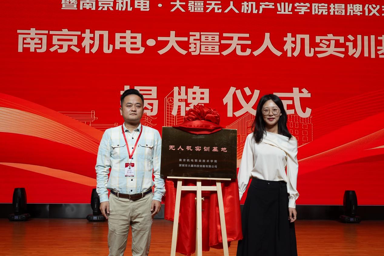 揭牌及签约仪式上,学校党委委员、副校长刁爱军与深圳市大疆创新科技有限公司华东区代表滕菲共同为“南京机电•大疆无人机产业学院”揭牌。学校电子工程系主任姚小冬与滕菲为“南京机电•大疆无人机实训基地”揭牌。学校党委委员、纪委书记、工会主席姜振宇与南京弘谷信息科技有限公司总经理赵华君共同签订“南京机电•大疆无人机实训基地设备捐赠协议”。学校电子工程系副主任丁向琴与南京弘谷信息科技有限公司副总经理顾启凌共同签订“南京机电•大疆无人机产业学院第一个合作项目协议”。学校与深圳市大疆创新科技有限公司将本着优势互补、共同发展的宗旨,坚持“育人为本、产业为要、产教融合、创新发展”的建设原则,以区域无人机产业行业发展急需为牵引,立足机电学院办学定位和发展思路,建立长期、紧密的合作关系,打造融专业人才培养、关键核心技术研究、前沿技术创新应用推广、专业师资赋能、辐射地方产业、企业孵化服务、学生创业辅导等功能于一体的无人机领域示范性人才培养实体。