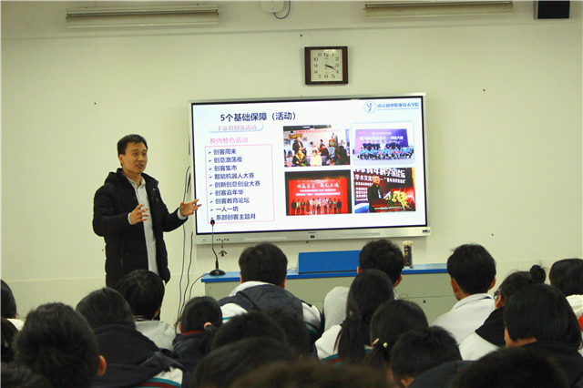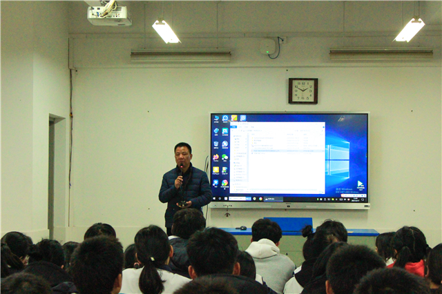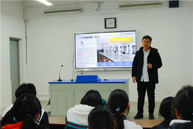 江苏省高淳中等专业学校副校长钱自豪对王主任的到来表示热烈欢迎。随后,王国珍主任结合自己的创新经历向在座师生介绍了我校倾力打造的创客校园文化。王主任说,乐玩体育于2015年建设国内首家创客校园,倾力打造集创意、设计、制造于一体的蓝岛创客空间,系统设计了“54333”创客教育体系。在学校的积极引导和政策鼓励下,全院师生的创新能力显著提高,专利申请和授权数量不断增加,学校逐渐形成了“人人皆能创新,人人皆可创新”的创客校园环境。王主任勉励在座学生:创新需要积累,用手机上的备忘录把每一个生活中不经意的想法记录下来,不断挖掘生活中的痛点,思考并不断优化解决方案,在日积月累之中,创意也许就会出现在眼前。现场师生报以热烈的鼓掌。