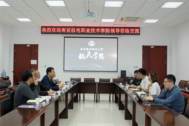 南京航空航天大学航天学院王寅院长热情接待了刁院长一行。王院长向刁院长介绍了南京航空航天大学航天学院的基本概况。王院长说,推动中国航天事业的发展不仅需要本科生、研究生的科技研发能力,也需要职业学校学生的实践应用能力。乐玩体育是我国率先与中国航天联手的职业学校,必将为中国航天产业发展提供强有力的推动。