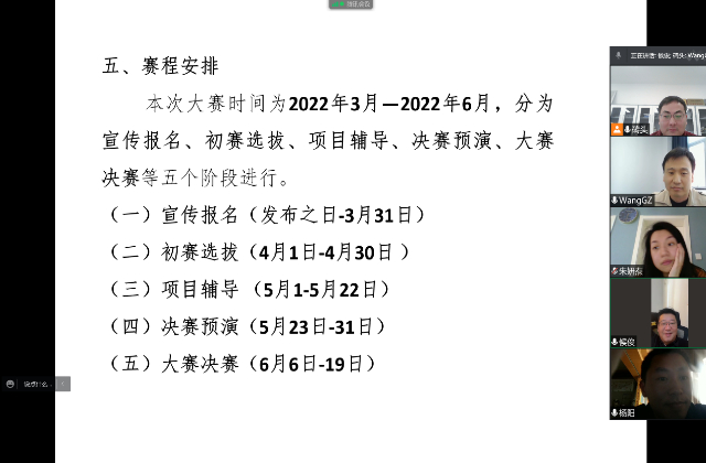 接着,杨阳老师概述了目前双创班学生的创新体验大赛报名情况,希望通过本次三创大赛的举行提高学生对比赛的参与积极性。最后,王国珍主任就蓝岛创客空间创新教研室教师和双创班学生的参赛情况做了进一步要求,将三创大赛作为教研室现阶段的重点工作之一。本次大赛旨在以赛促教,探索人才培养新途径;以赛促学,培养创新创业生力军;以赛促创,搭建产教融合新平台。希望蓝岛创客空间创新教研结合本次大赛提高学生的创新精神、创业意识和创新创业能力,推动教研室创新教育的高质量发展。