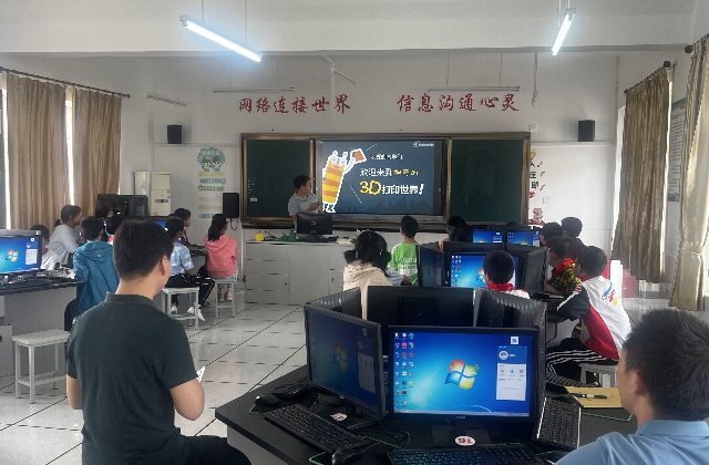 最后,蓝岛创客空间的黄克瑶老师给高淳区古柏中心小学的学生们带来了一场形象生动的“3D打印”创客教育课程活动。黄克瑶老师用通俗易懂的语言和生动形象的案例,深入浅出地给小朋友们讲解了3D打印的定义、功能、工作原理、操作技能、应用领域、以及发展前景等方面的知识。小朋友们热情高涨,在与老师互动时候纷纷举手,积极回答。课程结束后,小朋友们意犹未尽,纷纷上台来近距离观摩,争先恐后的提出自己的问题,黄克瑶老师悉心讲解,帮助小朋友们更加容易的理解3D打印的运行过程。