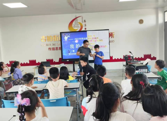为全面展示我校职业教育的办学特色,营造全社会关注职业教育、重视职业教育的良好氛围,我校于5月28日在高淳区古柏小学开展2023年职业教育创新周系列活动——我的航天梦。本次活动由高淳职业教育集团主办,乐玩体育与高淳区古柏小学共同承办,古柏小学、宝塔小学、滨湖小学等共6个班学生参加了本次活动。此次活动以“我的航天梦”为主题,由蓝岛创客空间主任王国珍带队,蓝岛创客空间教师黄克瑶、候俊、朱妍焘以及双创班的学生共同前往。