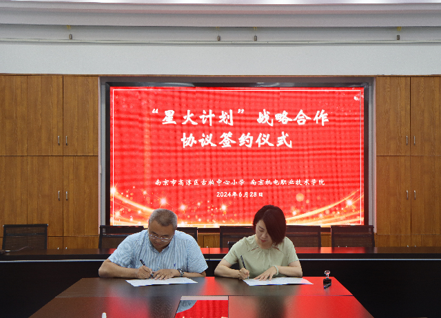 为响应“星火计划”要求,在更宽广的舞台上激发创新创业教育的活力,推动其蓬勃发展,我校于2024年6月28日前往高淳区古柏中心小学举行合作签约仪式。学校党委委员、副校长刁爱军,蓝岛创客空间主任、信息工程系主任王国珍,蓝岛创客空间老师黄克瑶和朱妍焘,高淳区古柏中心小学校长胡鑫,副校长芮峰云出席了本次活动。