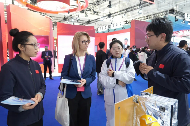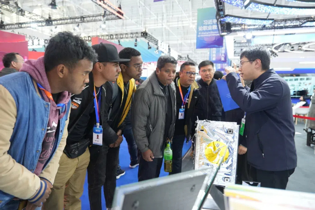 作为展示职业教育最新发展成果的重要平台,本届大会专门设立职业教育专题展,6000平方米的展区内既有航空航天等重大装备,也有AI技术未来工厂等新业态。来自国内的49所院校和机构、19家头部企业展现职业教育在服务经济社会发展、服务国家重大战略、服务人的全面发展中的贡献,令人目不暇接。南机电师生带着我国首颗由职业院校师生牵头研制的科普卫星“南京号”八一08星亮相专题展。师生们通过现场演示、技艺展演、交流互动等形式,多维度、深层次地展示学校的专业建设与科研成果。充满太空元素的展台分外醒目,不仅让各国、各地的参展嘉宾前来交流学习,更吸引了央视新闻、中国教育报、科技日报、21世纪经济报道等多家媒体的记者采访。