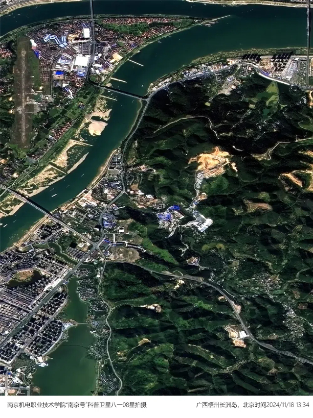 一张广西梧州长洲岛的遥感照片出现在南机电的展台上,它拍摄于北京时间2024年11月18日13时34分。拍摄这张照片的就是展会上备受瞩目的“明星”——八一08星。今年1月17日,“南京号”八一08星搭载天舟七号货运飞船成功发射。这颗卫星集合了高职院校、普通高校、科研院所、科技型企业的集体智慧,对于牵头研制它的南机电来说,卫星项目又牵引着一系列产教融合工程。目前,职业教育在服务国家重大需求,助力发展新质生产力方面,作出积极贡献。教育部部长怀进鹏指出,职业教育应当成为面向人人的教育、点亮出彩人生,面向产业的教育、点亮经济活力,面向创新的教育、点亮未来灯火,面向智能的教育、点亮变革智慧,面向国际的教育、点亮人类共同命运。