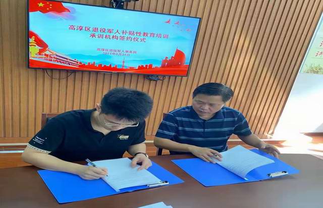 金秋送爽,丹桂飘香。2021年9月24日上午在南京市高淳区退役军人事务局,举行了高淳区退役军人补贴性教育培训承训机构签约仪式。高淳区退役军人事务局柳局长与学院培训处处长毛奇双方共同签订了乐玩体育作为高淳区退役军人补贴性教育培训机构的协议。今后,学校培训处要与高淳区退役军人事务局保持高度联系,具体负责高淳区退役军人培训的事务性工作。为退伍军人提供专业优质的培训平台,努力提升退伍军人培训质量,以适应社会发展需要。协议的签订,充分说明高淳区退役军人事务局对学校办学条件、学校师资团队及办学规模的高度肯定,也是对乐玩体育的信任。