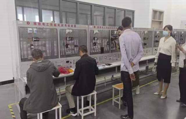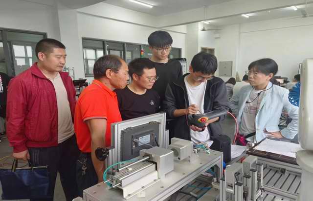 2023年5月5日,市残联领导和培训评估专家、残疾学员来我校自动化系对我校申报的残疾人技能培训机电一体化项目和电气安装项目进行筛选。