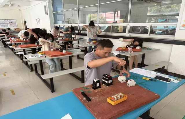 为落实新修订《中华人民共和国职业教育法》提出“职业学校教育与职业培训并举”,2023年6月4日,在高淳区人社局就业促进科领导的指导下,学校培训处和南京斯瑞奇医疗用品有限公司相互配合,完成对南京斯瑞奇医疗用品有限公司50名员工电工职业技能的认定,这是培训处首次与该公司合作。这次电工认定分高、中、初三个等级,认定考试为理论加技能。技能考试采用三种不同方式,其中初级电工认定技能考试采取笔试,中级电工技能考试采用实际操作考试,高级电工采用笔试加实际操作。