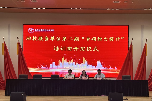为进一步提升驻校服务单位员工的职业素养与综合能力,促进校园管理与服务水平的全面提升,7月11日由学校培训处、后勤处、保卫处精心策划的第二期“职业素养”培训班在乐学楼报告厅开班。党委委员、纪委书记、工会主席姜振宇、继续教育学院副院长兼培训处副处长周云龙、后勤处处长孙永玲、保卫处处长张清松出席开班仪式,仪式由周云龙主持。