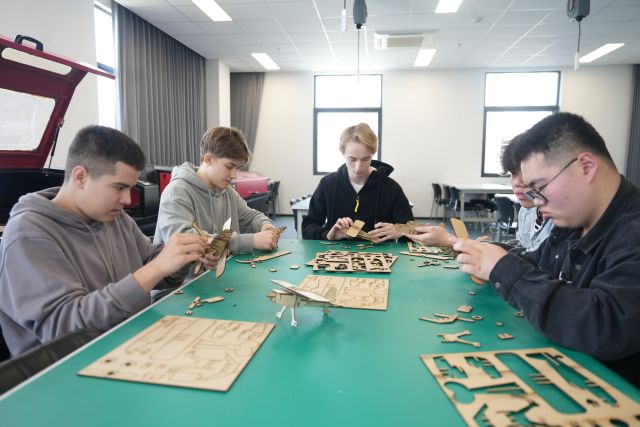 师生团一行首先参观了学校的“创客智造”职业体验中心、卫星监控中心、非遗工坊。