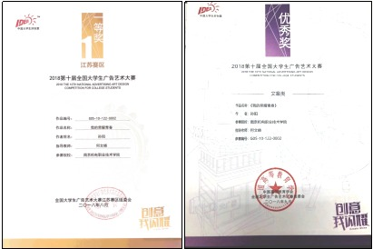1、中国大学生广告艺术节学院奖 金奖、江苏赛区一等奖、全国优秀奖