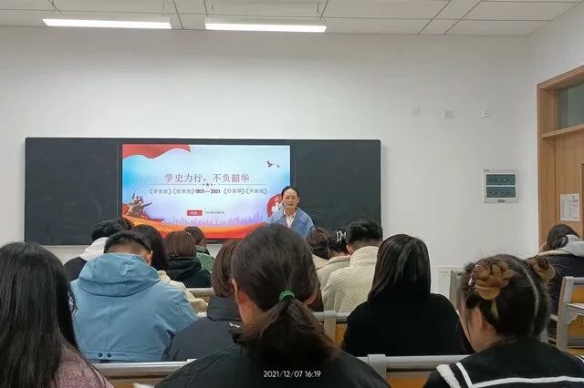开班仪式结束后,人文社科系党支部副书记叶绘同志作《学史力行,不负韶华》专题课程。