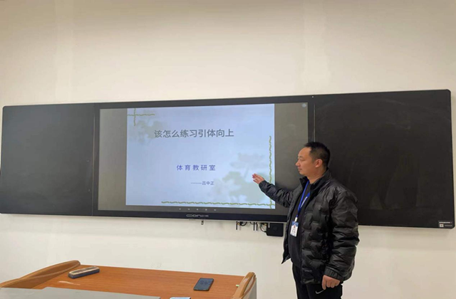 2021年12月14日下午体育教研室全体教师在育德楼105就“该如何提高学生引体向上的成绩”展开讨论,本次教研活动有教研室吕中正老师主持。