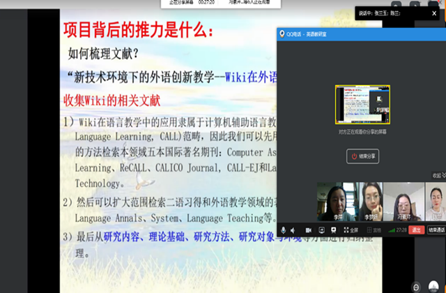 为提升教师科研水平,5月3日下午,人文社科系英语教研室全体教师相聚云端,开展“外语科研项目申报”的主题教研会,积极探讨了科研项目申报痛点和难点。