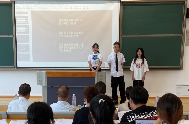2021级金融科技应用专业学生围绕两周的实践工作,分小组开展了实施汇报。汇报围绕本次实践活动的总结、实施过程中遇到的问题及解决举措、对高校数字人民币试点工作有效推广的建议等展开,同学们认真准备,汇报的过程中充分展示了两周实践活动中学生积极推广的场景、解决困难的方法,以及对高校数字人民币使用场景的畅想。评委老师对每组同学进行了提问,并围绕数字人民币在高校推广的场景搭建展开了探讨。