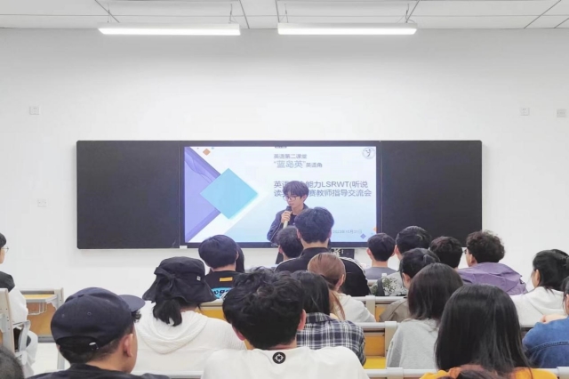 为了全面贯彻教育部关于高等院校英语教学改革和考试与评价改革精神,促进大学各类英语教学改革的实施,全面提高大学生英语综合运用能力,激发广大大学生学习英语的积极性,推动我校大学英语教学质量再上新台阶,提高学生英语语言能力,掌握英语演讲和写作的策略与技巧,丰富学生的学习体验,加强学生英语阅读、写作和翻译能力,熟悉比赛的流程和内容,人文社科系英语教研室依托英语课程第二课堂“蓝岛英”英语角在2023年10月31日15:00-16:00在博学楼205召开英语综合能力LSRWT(听说读写译)大赛教师指导交流会。本次指导交流会由钱伟伟同学主持,英语教研室比赛指导老师马坤豪老师给大家做赛前指导。
