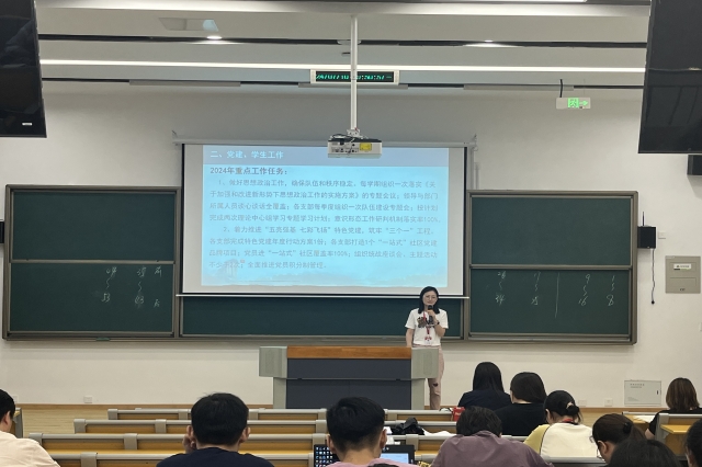 人文社科系党支部副书记叶绘回顾了党建工作与学生工作建设的显著成效。在党建工作方面,全体党员教师深入学习贯彻党的理论知识,不断提高政治素养和业务能力;着力推进“五亮强基 七彩飞扬”特色党建,筑牢“三个一”工程。在学生工作方面,健全招生就业“双提升”工作机制,壹生涯、红色灯塔辅导员工作室建设有序推进。
