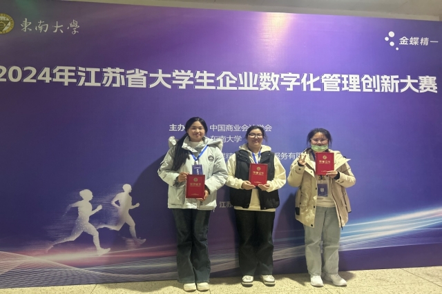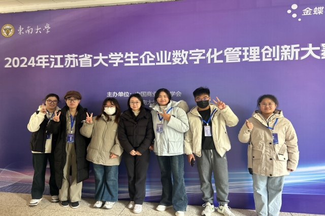 12月7日,2024年江苏省大学生企业数字化管理创新大赛在东南大学举行。来自全省各大高校的85支优秀团队齐聚一堂,共同展开了一场智慧与创新的较量。经过比赛的激烈角逐,由我校杨春涛、颜雪寒、黄心妍三名学生所组成的“你的强来啦”荣获二等奖,由李思蓉、马然、曹冉旭三名学生所组成的“机电旺旺队”荣获优秀奖。此外,大数据与会计专业教师王诗雅、薛蓓蓓荣获优秀指导教师。