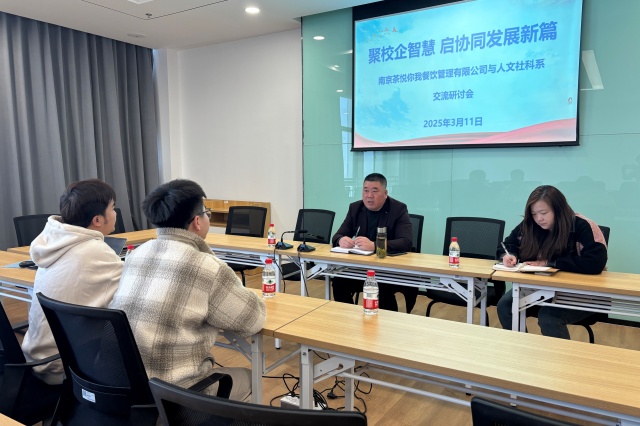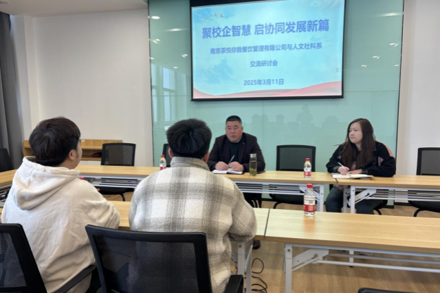 人文社科系党支部副书记李杰对南京茶悦你我餐饮管理有限公司的到来表示热烈欢迎。南京茶悦你我餐饮管理有限公司作为茶饮行业的佼佼者,凭借独特的品牌理念、优质产品以及出色的市场表现,在茶饮市场中占据重要地位。此次来访,旨在与人文社科系在人才培养、实践教学等领域开展深度合作,实现互利共赢。