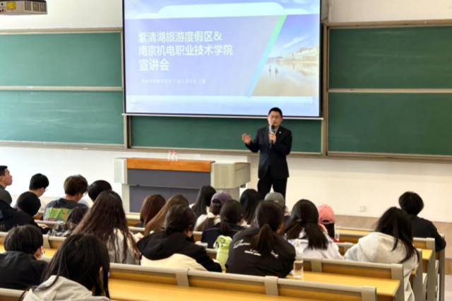 会后,中宁集团紫清湖度假区在善学楼102举办了专场招聘宣讲会,2026届全体学生及辅导员参加了此次活动。宣讲会上,王俊详细介绍了企业的发展历程、业务板块及未来规划,重点解读岗位需求、职业晋升路径等内容,为学生提供了清晰的职业发展方向。
