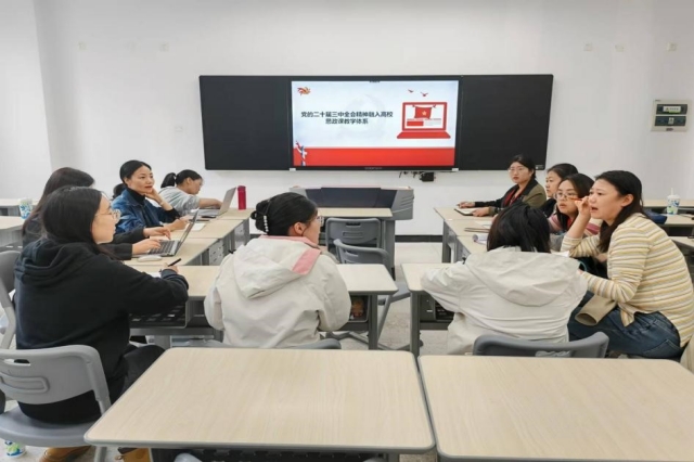 2024年10月22日下午,思政中心全体教师在博学楼107开展教学研讨会,此次研讨会的主题为“党的二十届三中全会精神融入思政课教学体系路径研究”。会议由毛莉老师主持。