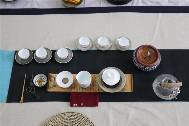 虽然有阵阵小雨并伴随着瑟瑟凉风,但依旧没有削减老师与同学们的热情。茶道是一种艺术、一种修身养性的方式。喝茶能静心、静神,有助于陶冶情操、去除杂质,这与提倡“清净、恬澹”的东方哲学思想很合拍,也符合佛道儒的“内省修行”思想。茶道精神是茶文化的核心,是茶文化的灵魂。