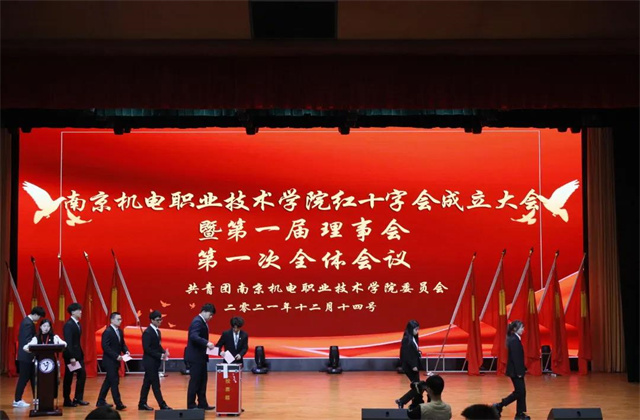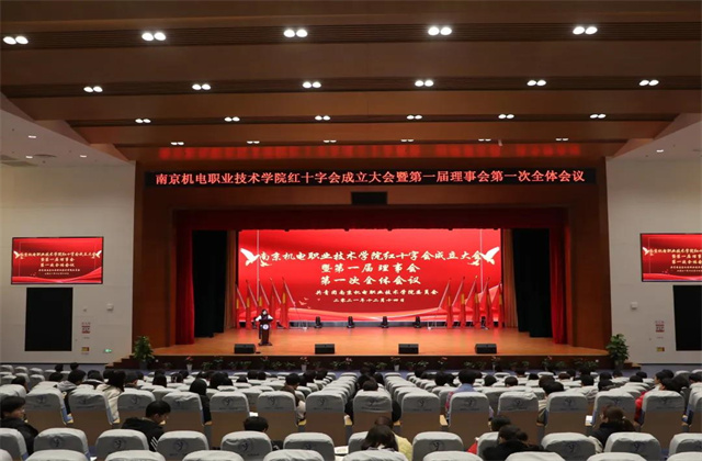 2021年12月14日,乐玩体育红十字会成立大会暨第一次会员代表大会在星梦馆多功能厅召开。南京市红十字会党组成员、副会长叶军,南京市高淳区红十字会常务副会长诸立新,乐玩体育党委书记、院长周庆礼,乐玩体育党委委员、副院长赵学洪,乐玩体育党委委员、工会主席姜振宇,乐玩体育团委书记唐钰峤出席会议。会议邀请了来自南京市红十字会、高淳区红十字会、办公室、党委工作部、工会、学生工作处、后勤处、团委以及各系部的主要领导及教师、学生会员代表共180人参加。