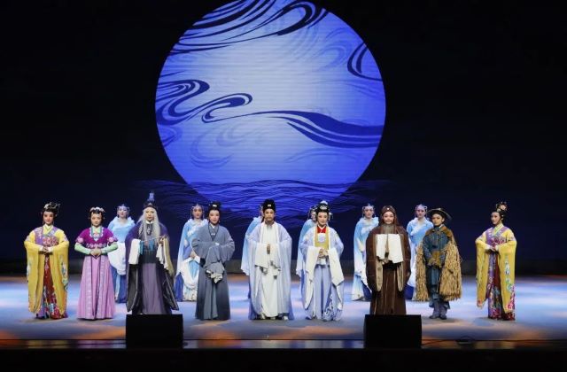 《凤凰台》是以李白、玉真公主、宗小玉三人的爱情故事为题材的诗韵越剧。全场视角独特,是一台经过精心打磨便可望立得住、传得开、留得下的精品力作,南京元素在剧中诗意地呈现,空灵、唯美、典雅、大气,凸显六朝古都、金陵古韵的风范和意境。李白生性不羁,仕途上,他胸怀抱负,但不屑溜须拍马;感情上,他情定玉真,却不愿依附于玉真的公主身份。李晓旭先生饰演的李白从年轻时的风流飘逸、生性不羁到垂暮老矣的年老,表现了毕派明朗豪放、流畅清旷的唱腔风格,为整台戏剧画龙点睛。