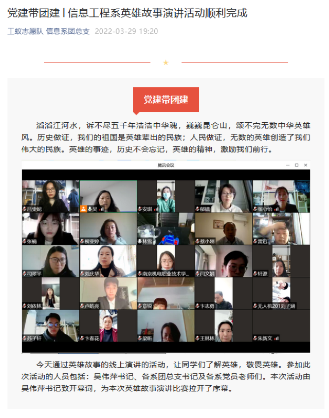 党建带团建——信息工程系英雄故事演讲活动顺利完成