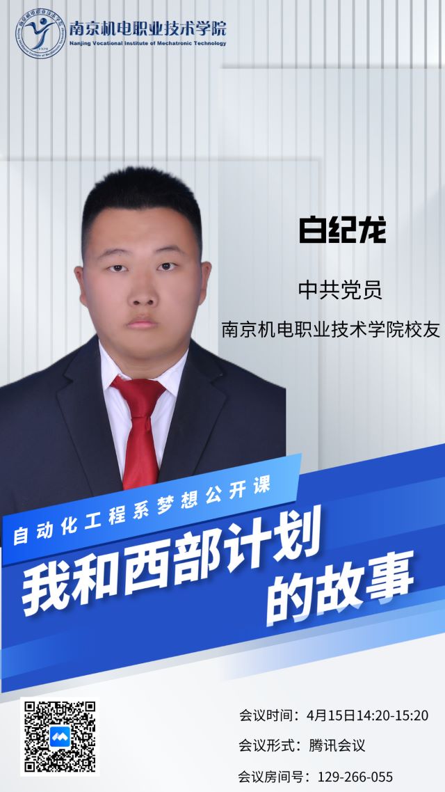 “喜迎二十大、永远跟党走、奋进新征程”,为迎接党的二十大胜利召开和庆祝中国共青团建团100周年,鼓励同学们积极响应国家的号召,乐玩体育自动化工程系党支部联合团总支于4月15日下午在腾讯会议上举行了党日活动暨梦想公开课——我与西部计划的故事,主讲人白纪龙用自身的经历为大家分享了自己与西部计划的故事。
