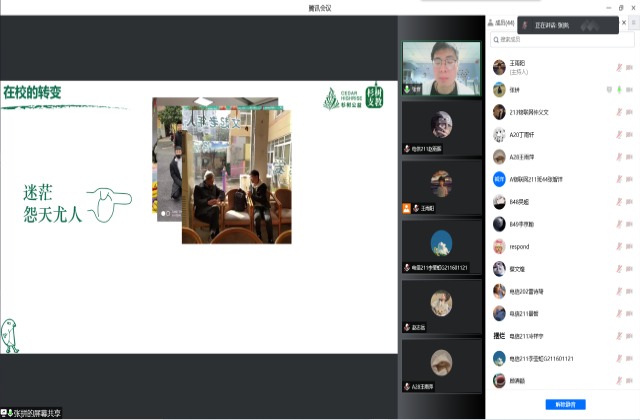 2022年5月12日19点,我系团总支在线上举办了新思想公开课,本次公开课由系团总支秘书长王雨阳主持,19级张拼学长主讲。我系团总支全体成员参加了本次公开课。