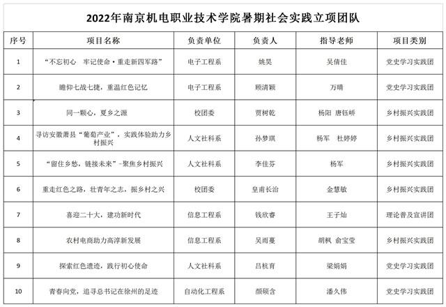 为深入学习宣传贯彻习近平新时代中国特色社会主义思想和党的十九届六中全会精神,贯彻落实习近平总书记关于青年工作的重要思想,深入学习习近平总书记在庆祝中国共产主义青年团成立100周年大会上的重要讲话精神,引导和帮助广大青年学生上好与现实相结合的“大思政课”,在社会课堂中“受教育、长才干、作贡献”,迎接党的二十大胜利召开,根据“三下乡”社会实践活动安排,经自主申报,各团总支、青马班审核推荐,校级专家评审,确定以下10个项目为2022年乐玩体育暑期社会实践重点立项项目,并对立项的校级重点项目进行经费支持,现公示如下: