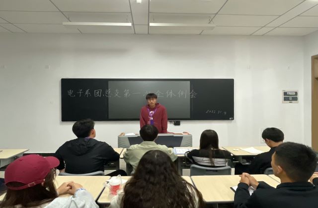 10月28日下午5点,团总支组织的22级电子系工作会议在思学楼108召开。本次会议由团总支副书记顾清颖主持,参会人员包括全体部长及干事。