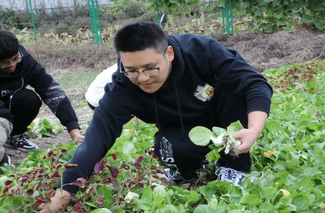 活动在兴奋、新奇的氛围中进行。随着辛勤的汗水浮出同学们的脸颊,装载劳动果实的包裹也逐渐充实起来,种满果蔬的肥沃土地在学生们的正确采摘下露出满意的笑容。