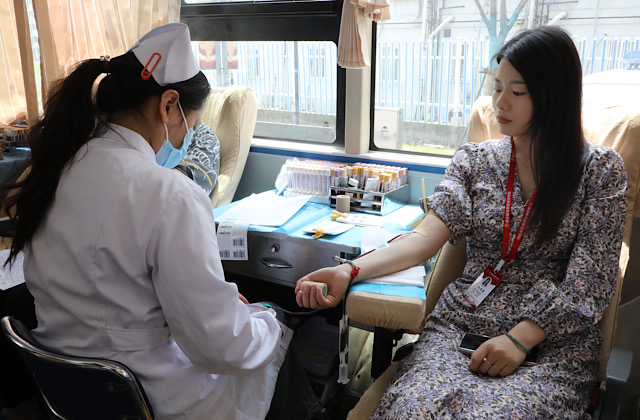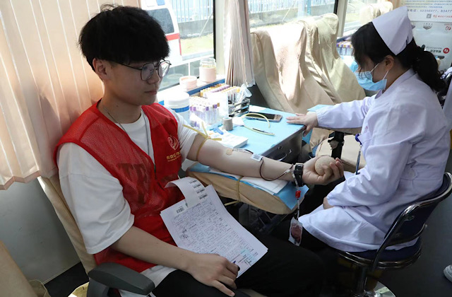 2023年5月18日和19日,志愿者们本着“奉献、友爱、互助、进步”的志愿服务精神,在学院秋林阁食堂一楼入口处举行了为期两天的以“献血献爱心,血浓情更浓”为主题的大学生无偿献血活动。此次由乐玩体育工会、团委、学生工作处大学生资助管理中心携手南京红十字会血液中心共同开展。在活动开始前,校团委做了积极的宣传发动工作,让更多的同学了解到无偿献血这一行动,并参与到本次校园活动中。