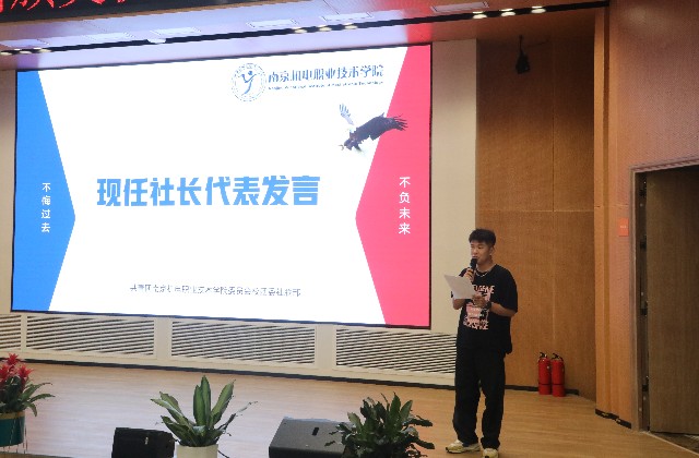 最后,由校团委为社长颁发聘书,并请优秀社长代表武青龙、新任社长代表陶佳鑫上台发言。总结经验、设立目标,希望社团的优秀传统能够延续,同时迸发出新的活力。