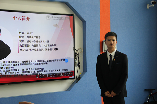 赵乾,共青团员,乐玩体育机电一体化技术214班学生,曾担任自动化工程系学生会主席。在校期间分别获得“国家奖学金”和“国家励志奖学金”各1次,曾获得2023年度江苏省“三好学生”、第十八届“挑战杯”江苏省二等奖、江苏省职业院校创新创业大赛三等奖2次、第八届江苏省“互联网+”大学生创新创业大赛三等奖等荣誉。作为一名学生骨干,积极参加志愿服务及公益活动,累计志愿服务时长500小时,曾获得徐州市“核酸检测优秀志愿者”、学校“寒暑假社会实践优秀个人”各1次。
