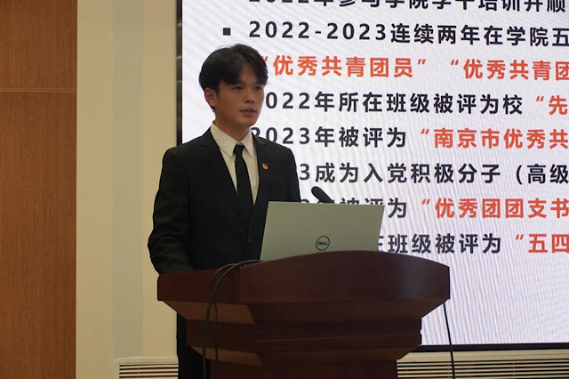 朱昶羽,男,共青团员,2003年1月生,自动化工程系电气自动化技术专业21级专科生。曾担任系团总支秘书长、班级团支书等职务。在校期间成绩一直名列前茅,授理专利1项,曾获得国家奖学金、国家励志奖学金、南京市优秀共青团员等荣誉称号。