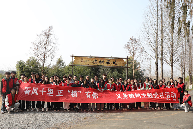 为深入学习贯彻习近平生态文明思想,助力建设人与自然和谐共生的美丽中国,机关二支部于“312植树节”当天下午举办“春风十里 正‘植’有你”义务植树主题党建带团建活动。机关二支部14名老师和31名学生志愿者参与了本次活动。