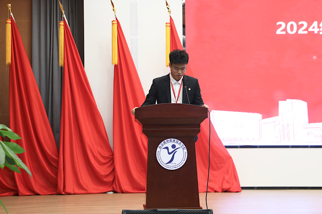 张庭豪同学作为此次学干培训的新生代表发言。他表示学生干部,是一个光荣的身份,更是一份沉甸甸的责任。作为新时代的学生干部,应该做到培养良好品德,塑造高尚人格;积极面对挑战,勇于担当作为;树立大局意识,心怀使命责任;贯彻我校勤学、善思、明理、笃行的学风;诚信、奋进、合作、创造的校风;知行合一、自强不息的校训,以勇往直前的精神迎接每一个挑战,用智慧和勇气书写南机电的新篇章,为建设有爱、有趣、有情怀的南机电贡献自己的一份力量