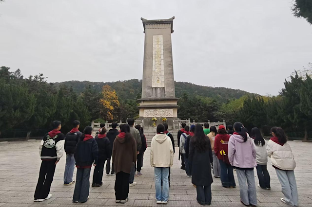 为传承红色基因,赓续红色血脉,2024年11月19日下午,乐玩体育第五期青马班的同学们奔赴溧水,展开了一场追寻红色记忆的深刻之旅。活动首站来到回峰山烈士纪念碑,祭奠活动在回峰山脚下隆重举行。