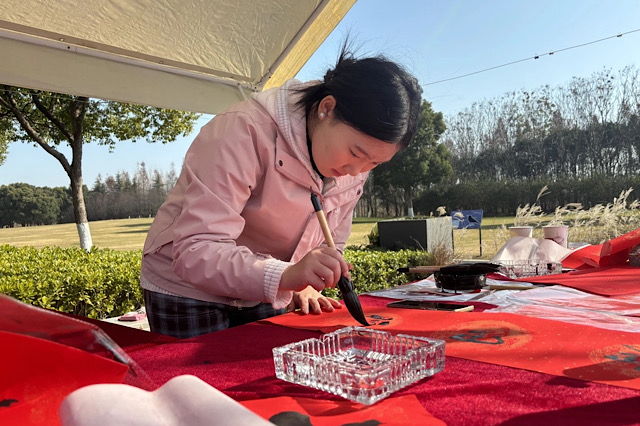 何智思同学一头扎进了“翰墨迎新春”书法公益活动。活动现场,那氛围,简直绝了!大红的纸张一铺开,墨香瞬间弥漫开来,仿佛连空气都被染上了喜庆的色彩。何智思和当地书法爱好者们就像一群身怀绝技的大侠,笔走龙蛇,一个个苍劲有力的大字跃然纸上,一副副饱含新春祝福的春联和“福”字诞生了。村民们围得里三层外三层,眼睛放光,挑选着自己心仪的春联,现场欢声笑语不断,浓浓的年味就此拉满。这不仅是书法的展示,更是传统文化的传承,何智思用手中的笔,将新春的温暖传递到了每一个人的心中。