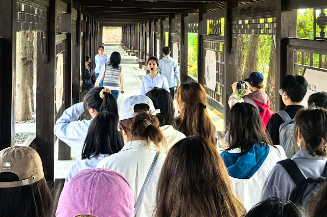 活动伊始,南机电师生代表走进中华绒螯蟹博物馆,在声光电交织的沉浸式展陈中回溯高淳螃蟹产业的蝶变之路。从最初零散的养殖户到如今产值超百亿元的产业链,从蟹苗培育技术突破到“互联网+农业”的营销模式创新,展柜中泛黄的创业手稿、历代蟹农的影像记录,让南机电师生代表触摸到乡村振兴背后的汗水与智慧。原来一只螃蟹背后藏着科技兴农、产业富民的密码!