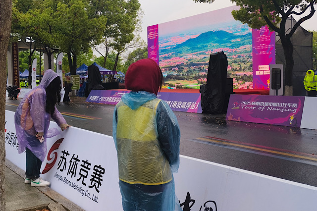 2025年4月12日,中国银行·2025环南京都市圈自行车赛暨大运河自行车系列赛在高淳游子山鸣枪开赛。南小电志愿服务队50名成员坚守岗位,用青春热血筑起赛事“安全屏障”,在风雨交加的赛道上书写新时代青年担当。