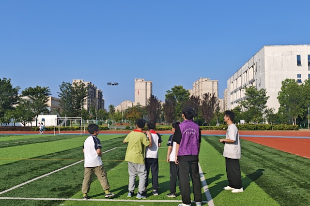 最激动人心的试飞体验环节在操场展开。志愿者们严格按照安全规范,分组为小学生们进行无人机飞行演示。随着螺旋桨快速转动,无人机平稳升空,在空中完成悬停、旋转、360度环绕等一系列精彩动作,引得孩子们惊叹连连,欢呼声此起彼伏。在确保安全的前提下,志愿者们手把手指导小学生们进行简单的无人机操控体验。孩子们小心翼翼地握着遥控器,专注地盯着天空中的无人机,当成功让无人机按照指令完成飞行任务时,一张张稚嫩的小脸上绽放出灿烂的笑容,兴奋与自豪之情溢于言表。