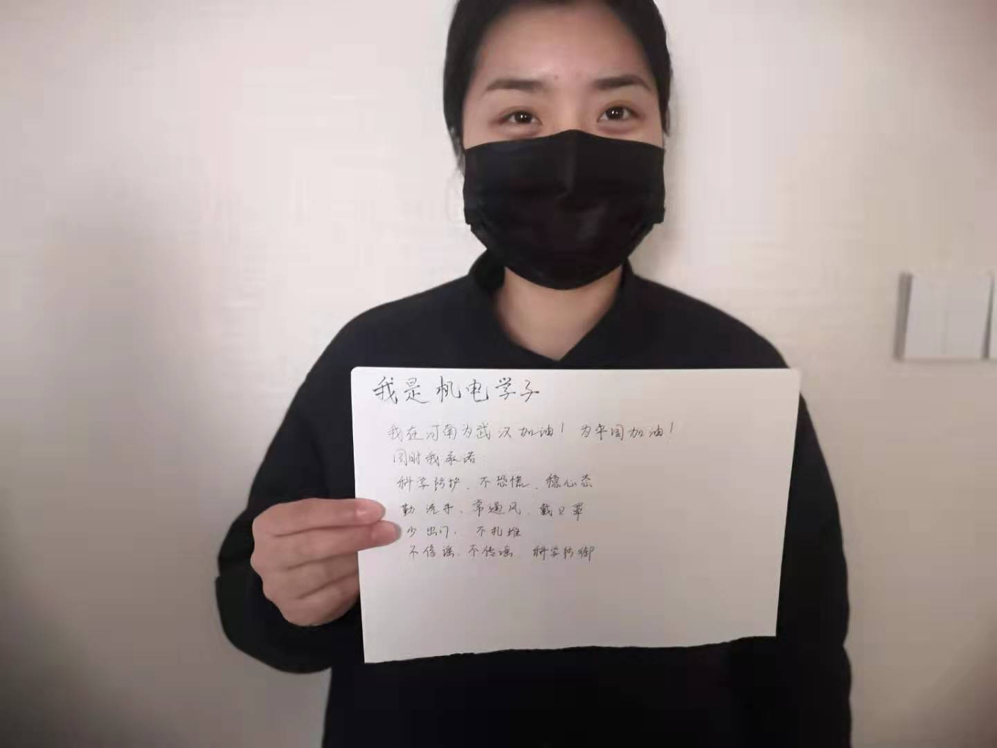 软件技术192班团支书何丹凤:我在河北邢台为武汉加油!作为普通民众的我们能做的是少出门、多看书、不传谣、不信谣。作为机电一份子的我们不提早返校,在家积极待命,服从学校安排。最后,祝武汉早日战胜疫情!