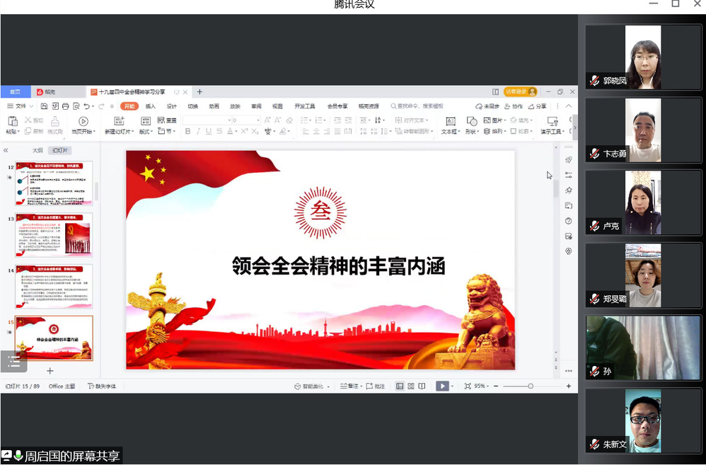 2022年4月26日晚,信息工程系通过腾讯会议召开了“迈向‘中国之治’新境界的重要里程碑——认真学习贯彻党的十九届四中全会精神”的专题学习会议。专题会议由学院党委工作部周启国部长主讲,支部书记吴伟萍、系部主任王玮以及全体系部教职工参加了此次学习活动。