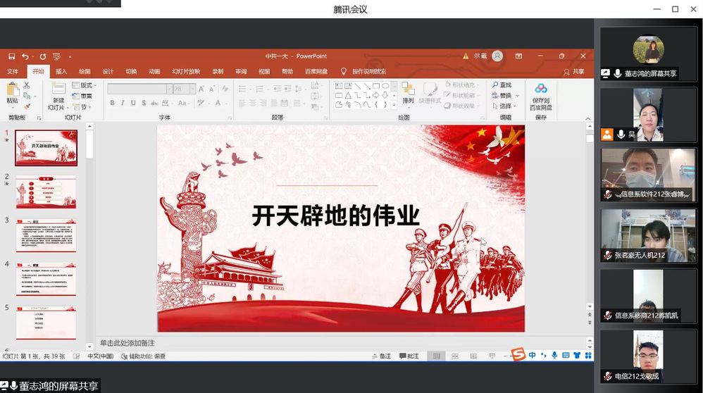5月12日晚19点,乐玩体育信息工程系党支部组织21级先进团员开展线上学习,学习内容为中共一大会议精神,我院思政中心董志鸿老师为主讲老师。